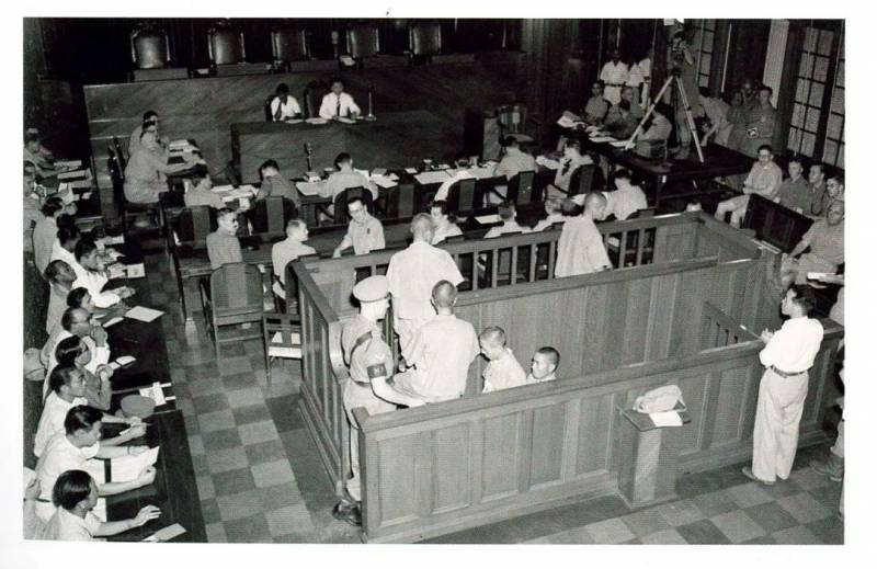 图/原本最高法院设计了非常精妙的动线,法官、犯人和律师、陪审团分别有不同的入口,比如照片中的日本战犯,是从一个地下通道直接来到被告席的。但是出于新的使用功能的需要,最终只保留了两个被告席,一个地下通道和两个关押室(关押室原有10个,8男2女)。来源:Connetions- History and Architecture, City Hall and Supreme Court