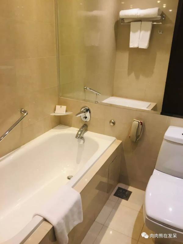 虽然是随手定的双床房,不过后来工作人员还是给了我们一个大床房,房间有30平方米,就跟广州400多500的酒店差不多吧,跟想像中没什么特别大的出入,厕所比较小,有个浴缸