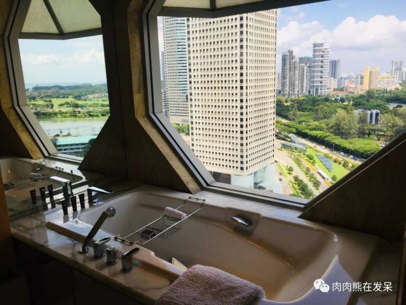 而新加坡丽思卡尔顿酒店的浴缸还有个我特别喜欢的地方就是它家浴缸设计了个地方给你枕着,特别舒服。