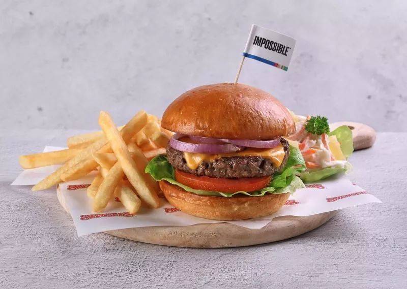 美国知名汉堡品牌Five Guys。(餐馆提供) 有别于大家熟悉的快餐店汉堡包,精致汉堡的食材精选,烹饪考究,一改汉堡平民形象,身价上涨几倍,一份汉堡售价可达二三十元。 此外,2003年撤出新加坡的快餐品牌A&W重返狮城,它在星耀樟宜的快餐店天天排队人龙不断。 “不可能的食物” 继去年植物牛肉Beyond Meat制成“未来汉堡”(Beyond Burger)和植物猪肉“新猪肉”(Omnipork)等素肉后,今年盛行味道和质感可媲美真牛肉的素肉“不可能的食物”(Impossible Foods)。 美国公司“不可能的食物”于2011年由美国史丹福大学名誉教授布朗(Patrick O.Brown)创建。今年,本地不少汉堡包品牌先后推出“不可能汉堡”(Impossible Burger)系列,各家餐馆也陆续用这种植物肉碎烹调“不可能的食物”的菜肴,例如:意大利面、比萨、中式水饺和烧饼。