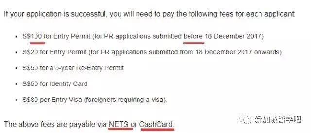 关于申请费用,现在只要线上申请都要先交100新币,申请通过之后,就要为Entry Permit 交20新币(2017年12月18日前申请要交100新币,有没有觉得现在很划算),然后Re-Entry Permit50新币,PR准证50新币,Entry Visa30新币。这些费用都可以在领取PR准证那天,通过刷卡来交。
