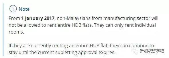 从2017年1月1日开始,制造业的WP准证持有者不再被允许整租一套组屋,只准租自己的单个房间。如果已经租下整套组屋,在租约满之后不再允许。