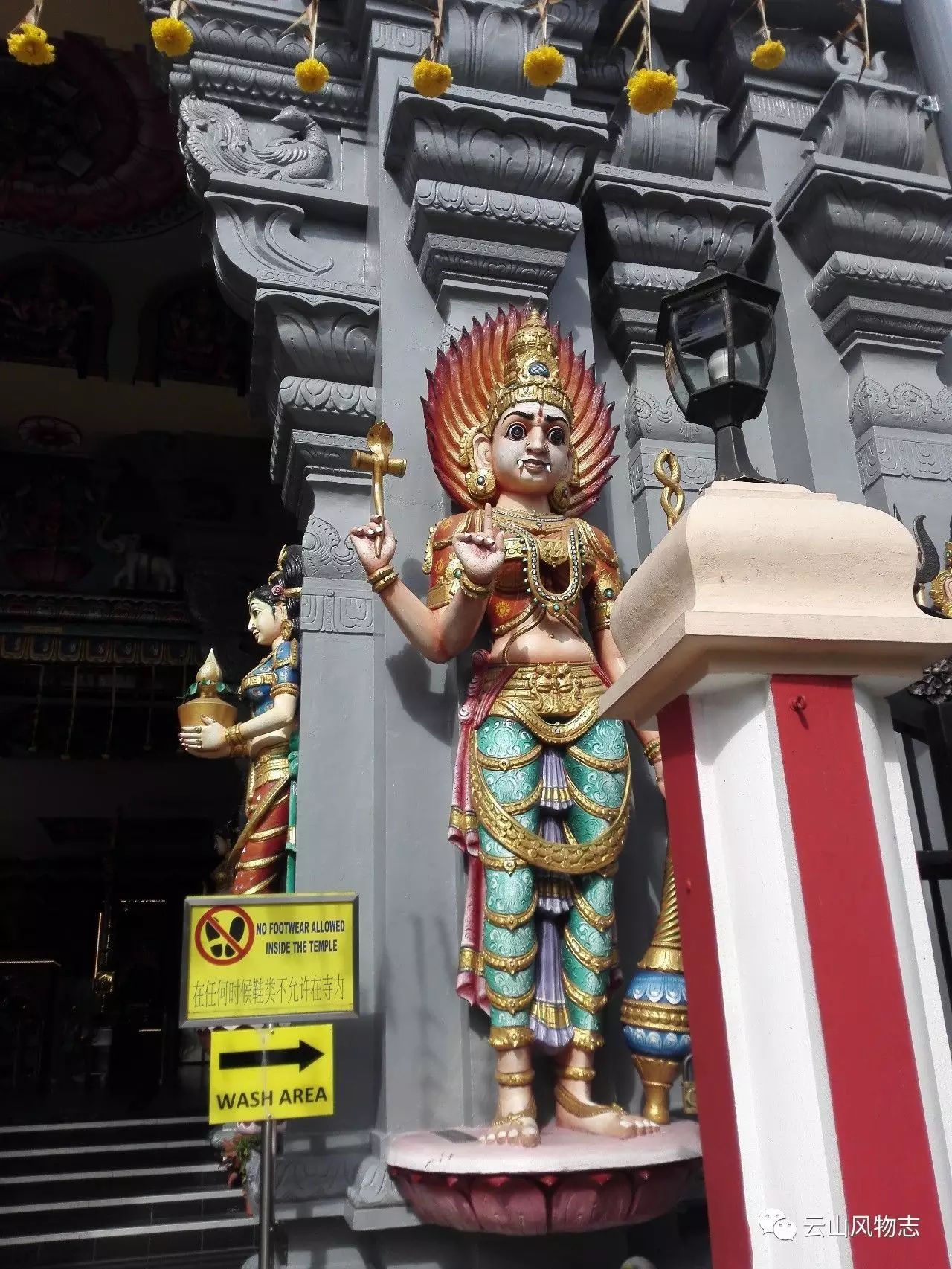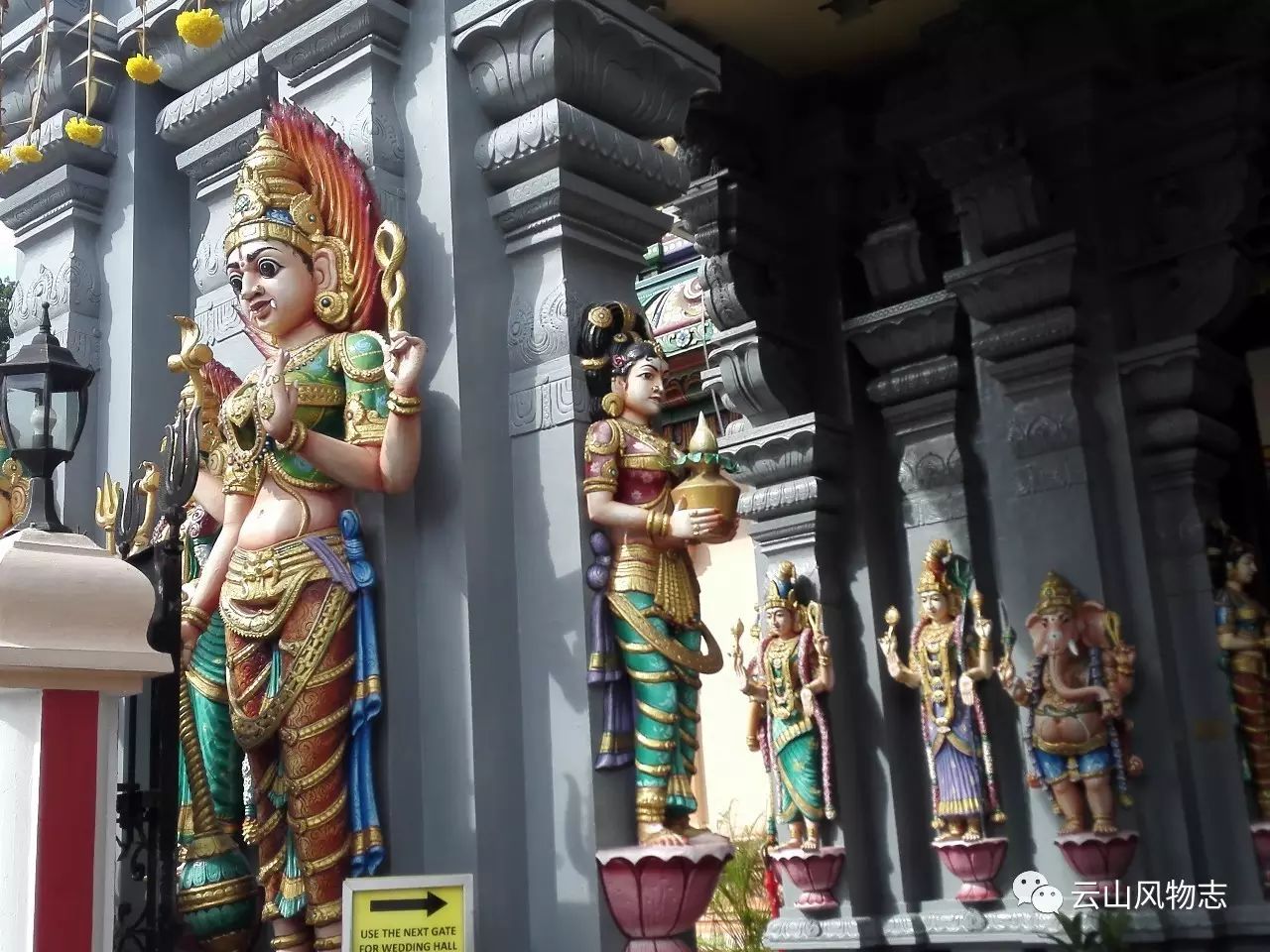 天空蓝得似玻璃般通透,路边的热带植物绿得能挤出油一般新鲜、有活力,从远处看,雕梁画栋的印度庙映衬著纯蓝色的天空,愈发神秘。印度教中特有的众神端坐庙宇顶端,眉宇间的英气透著庄严与严厉,并没有神煞的狰狞与凶恶。