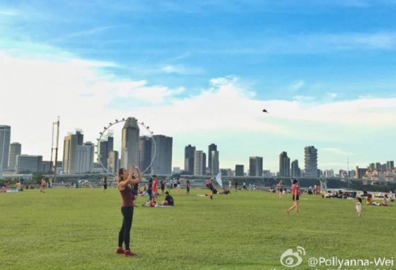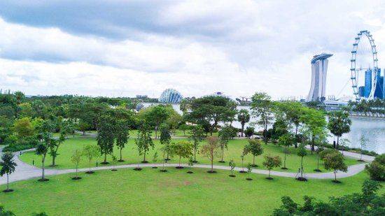 滨海湾花园就在金沙的对面,不过,不是公园里的每个地方都能看到烟花,毕竟树很多啊......所以,大家要记得找像图中这种空地哦~