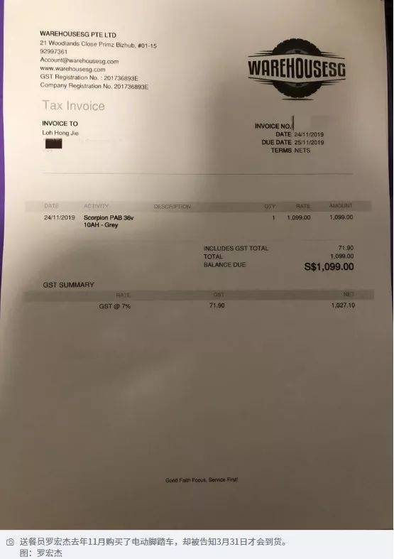 送餐员罗宏杰在去年11月买了一辆电动脚踏车,现在商家告知说要今年3月31号才能到货,现在他只能闲赋在家,等著电动车到了后,才能申请以旧换新津贴,买脚踏车送餐。