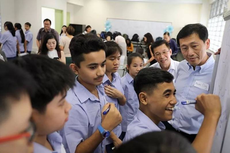 教育部长王乙康部长特意在新学年第一天到率先实行全面科目编班制的平仪中学了解情况,并与混合编班的新生一起上了一堂课。