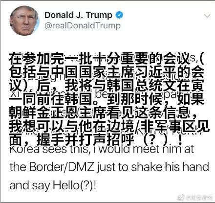 也就是在昨天,特朗普在推特上邀请金正恩前往韩非军事基地见面。