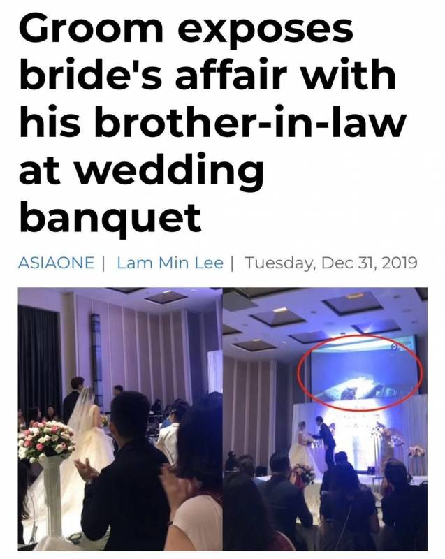 婚礼现场播放新娘和姐夫出轨视频!上了新加坡头版!没眼看