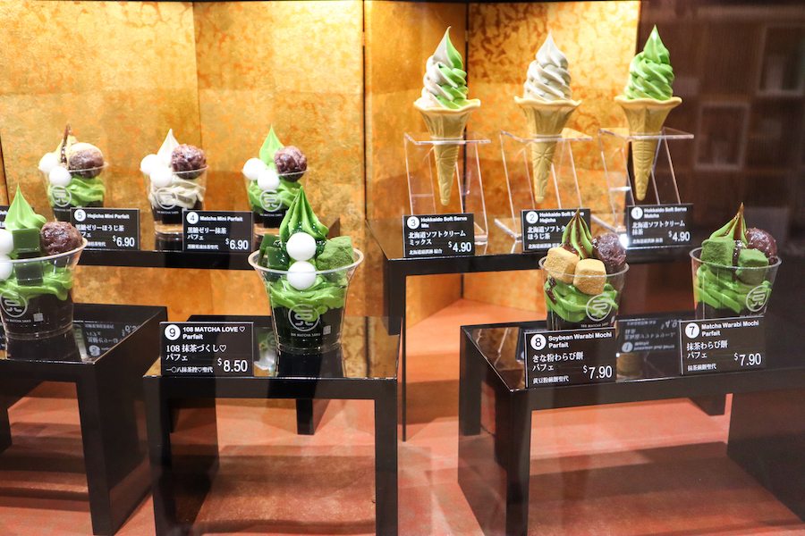 不仅有抹茶冰激凌、麻薯、抹茶蕨饼、红豆泥、抹茶饮料等等