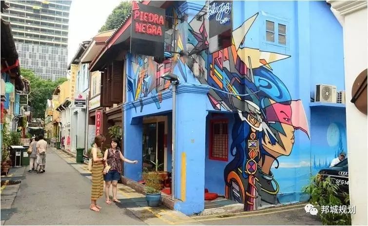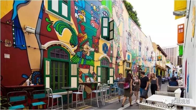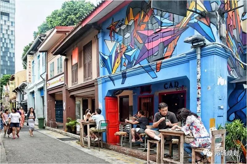 除了充满历史文化气息的建筑,甘榜格南也有充满活力的一面。位于甘榜格南内的哈芝巷,曾经是一条两旁都是战前房屋的空荡街道,如今有大批本土设计师和年轻创业者进驻,加上业主和艺术家为房屋加上独具创意的壁画,已使这条旧巷重获新生。