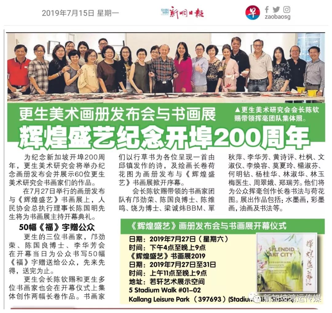 配合新加坡开埠200周年,更生美术推出纪念画册并举办2019会员书画展