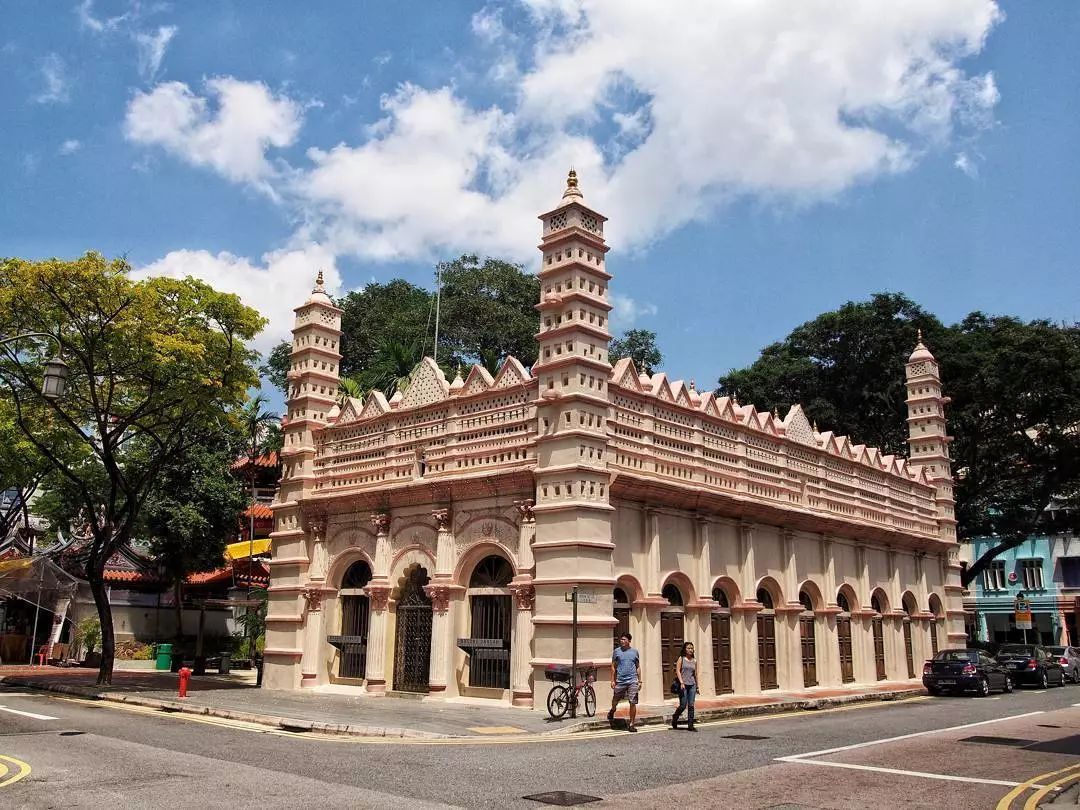 苏丹回教堂建于1824年 用于纪念新加坡的第一任苏丹 胡先沙苏丹 新加坡开埠者史丹福莱佛士爵士 当年出资3000元兴建一个具有双结构屋顶的单层建筑 一百年后,教堂因年久失修破旧不堪