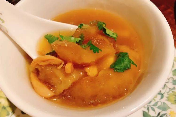 这满满一碗上好佳原料的汤,花胶浓郁,鸡肉鲜甜,汤底毫无疑问是用了多种上等材料长时间熬煮出来,喝上一口,浑身都服服帖帖。
