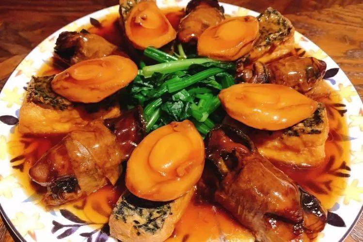 菠菜豆腐我认识,小坡潮州菜馆的常客,鸡脚是广式点心的网红,鲍鱼,我也认识,这三样搭在一起,我没见过。
