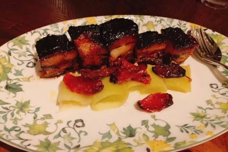 这道菜来自El Teatro(点这里复习),三层肉烤的流油,脂肪通过加热被适当的释放出来(突然明白为什么蒸桑拿瘦身备受欢迎),猪皮烤的火候很够,吃起来有些焦香,说人话就是“ 就稀罕这个糊巴味儿“。