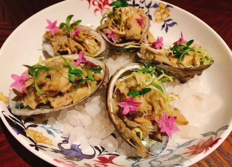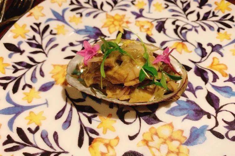 这么大的鲍鱼,给切成小块,凉拌了装回鲍鱼壳中,卖相上佳口感也很赞,每一口都Q弹,符合一个鲍鱼应有的口感,味道却很清新,完全颠覆了鲍鱼出场的形象。
