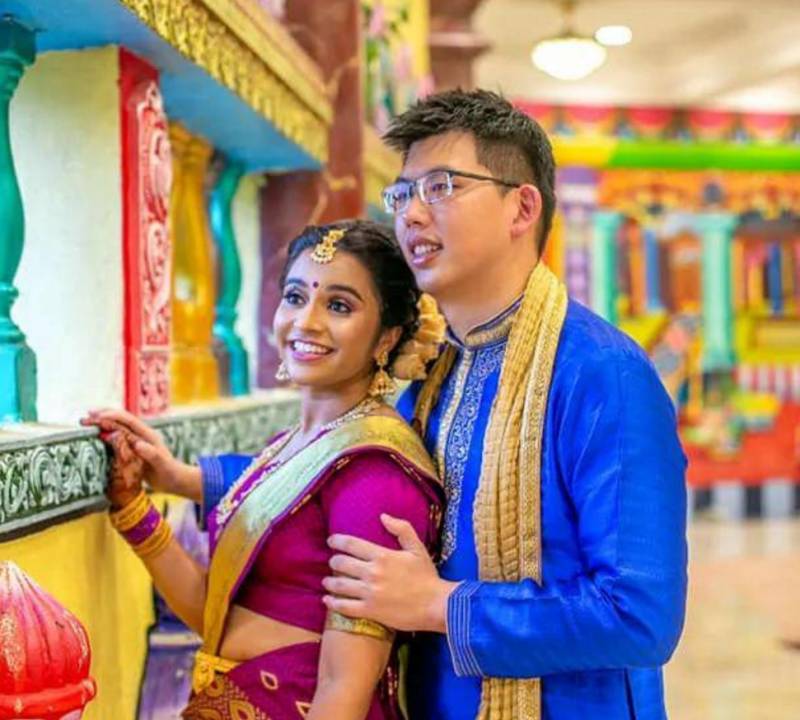 27岁的新娘Pathma是印度裔马来西亚人,29岁的新郎Boon Jun是新加坡华人,两人的爱情故事是在新西兰读大学的时候开始的……