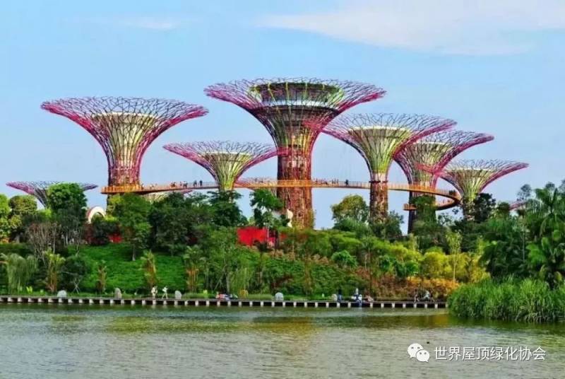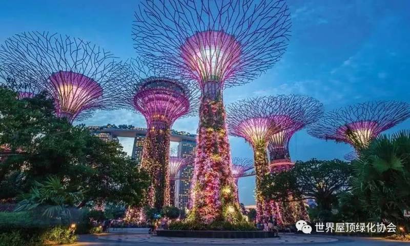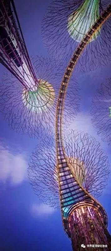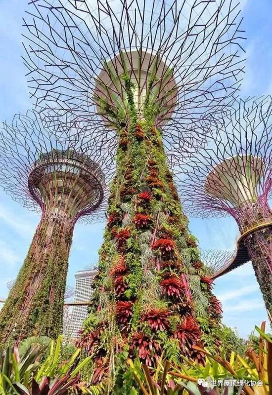 这个公园中最让人印象深刻的要素是一些高25米---50米的“擎天大树”(Supertrees),上面成长著垂直花园,攀缘植物,附生植物还有蕨类植物成长在上面。