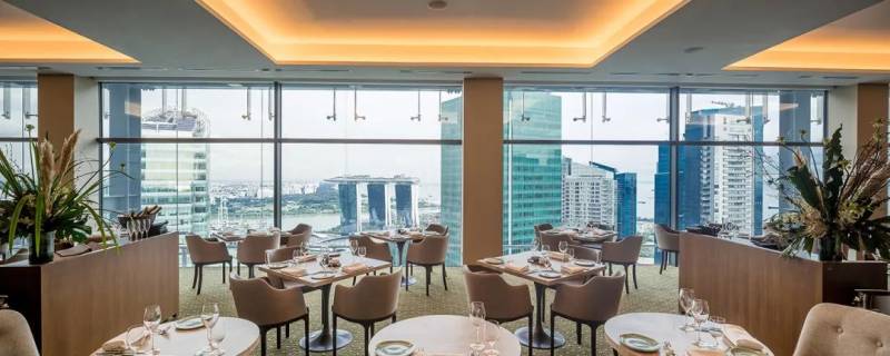 这家餐厅的地理位置真的是绝佳,CBD和滨海湾的壮丽景色一览无余。这里最出名是地中海菜系,大厨奥利弗·海德(Oliver Hyde)非常擅长处理龙虾、螃蟹、鱼、猪肉、鱼子酱,听上去就是适合庆祝的菜单吧~