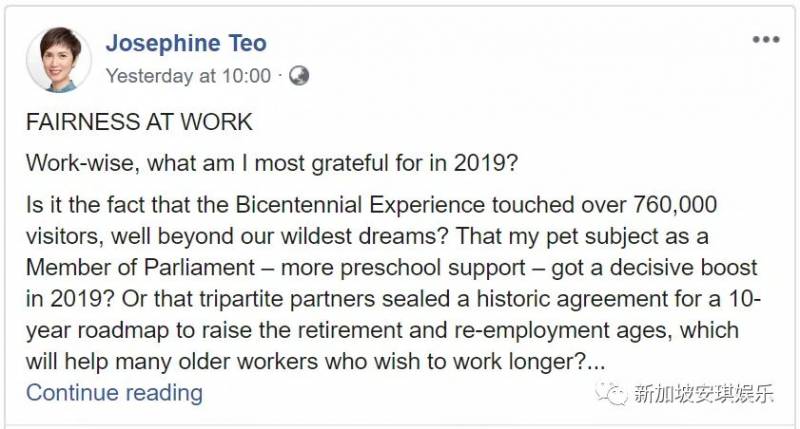 1月1日,就当人们还沉浸在辞旧迎新的喜悦时,新加坡人力部长杨莉明在脸书上发表贴文,表示人力部将在今年致力于提高工作场所的公平性,将于两周内颁布细则,保障新加坡人的工作机会,避免新加坡人受到职场招聘歧视。