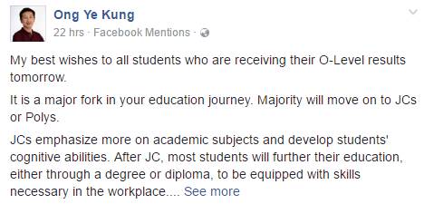 新加坡教育部部长王乙康,也曾在2017年O水准成绩放榜之际发长文总结:初级学院和理工学院都不错,建议考生从兴趣出发,做出明智的选择。