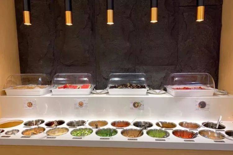 各式酱料一应俱全,八种不同锅底和海鲜蔬菜肉肉的搭配可以连续吃上一个礼拜不重样。