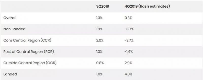 由市建局公布的2019年第四季度私人住宅价格预估显示,整体住宅价格指数的增长速度放缓:2019年第四季度环比增长0.3% q-o-q,而2019年第三季度为1.3%。