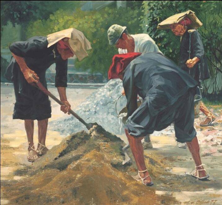 在家或出游时都在画画的画家蔡明智(89岁),儿时住过牛车水同济医院一带,油画作品出现了街头小孩好奇观赏的流动戏院,小贩叫卖,三几红头巾劳作的景象,人物画像尤其生动细腻。