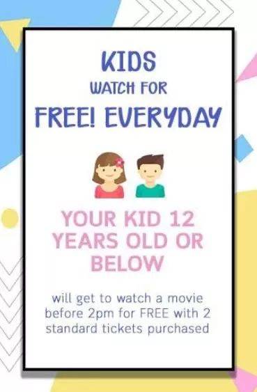 SHAW THERTRE 邵氏电影院 6岁以及以下儿童免费看电影,需在周一至周五下午2点前!