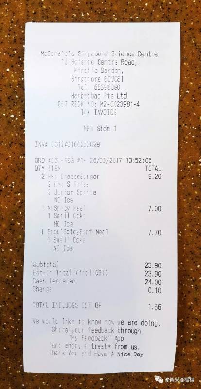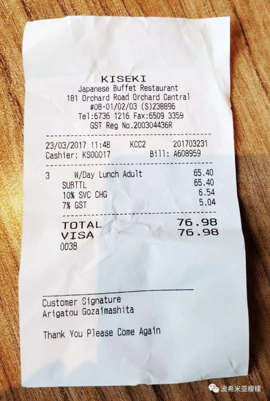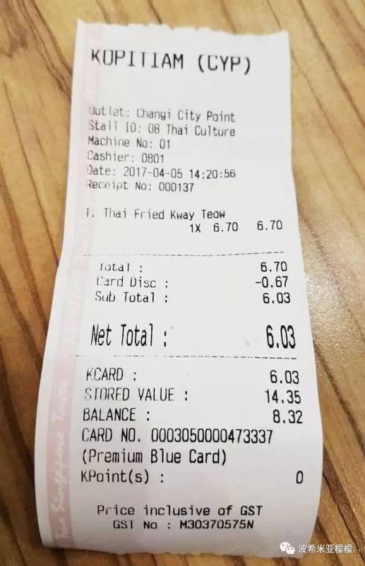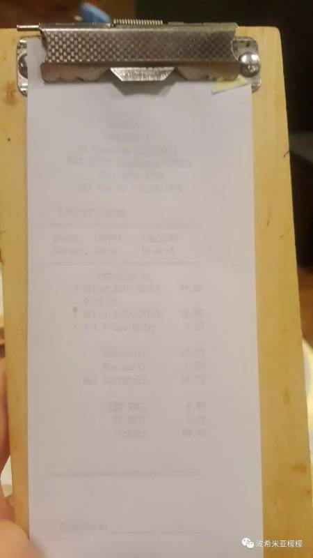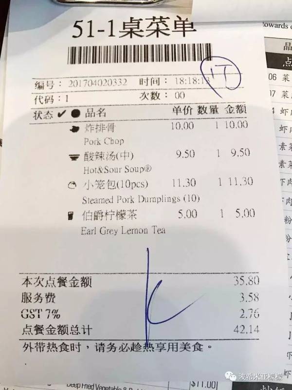 2、收据上的GST,消费税,只有极少数餐馆不收消费税,总账单的7%,不给更不行。