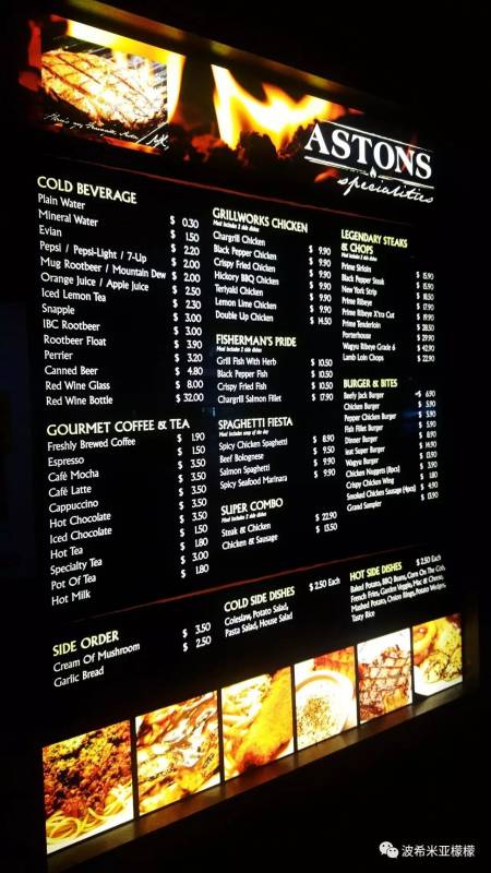 7、ASTONS西餐店 全岛不仅有多家餐馆,还在很多食阁设立摊位,价格经济实惠,品质却一点也不放松,这是我最喜欢的大众西餐馆,当然太好的我也没吃过,不过上次去Perth那家郊外风景如画的法国餐厅吃过一次贵的有点肝颤的西餐以后,并未觉得ASTONS输了太多。这里选择非常多,大人小孩都能吃到自己喜欢的,不需要迁就对方,而且主菜还附赠两个配菜,特别有满足感。