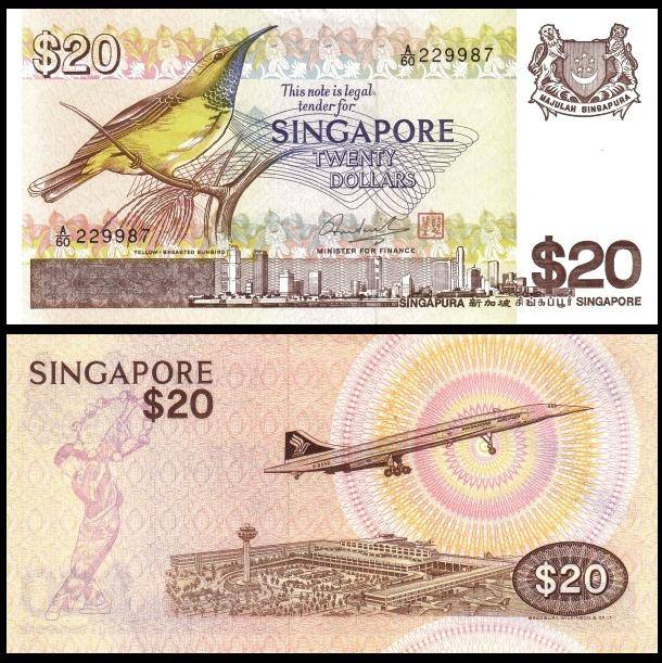 第二版鸟版,20元钞票。背面图案为新加坡樟宜国际机场。