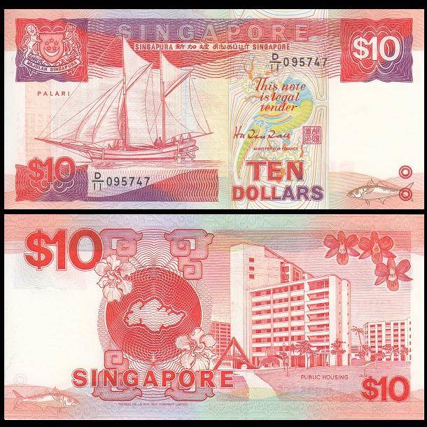 第二版鸟版,10元钞票。背面图案为高层公共住宅(新加坡的公租房)。