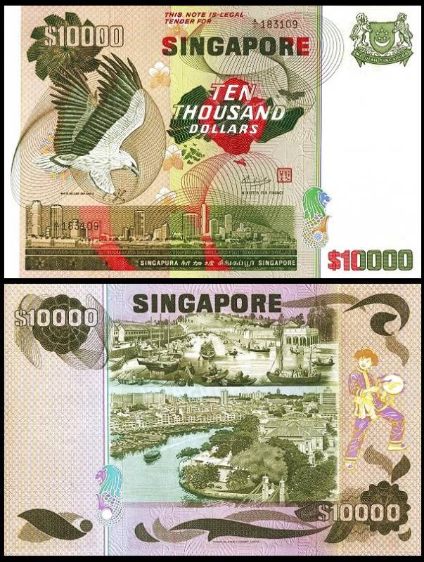 第二版鸟版,10000元钞票。背面图案为新加坡河。