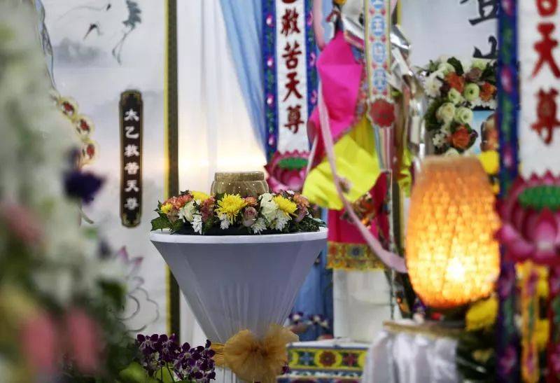 由于遗体被火化,死者蚁金通的家属只能将骨灰瓮放在灵堂让人拜祭。