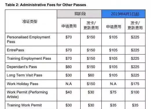 除了工作准证的行政办理费用有所上涨之外,其他可以在新加坡工作的准证也提高了办理费用,比如家属准证和长期访问通行证。