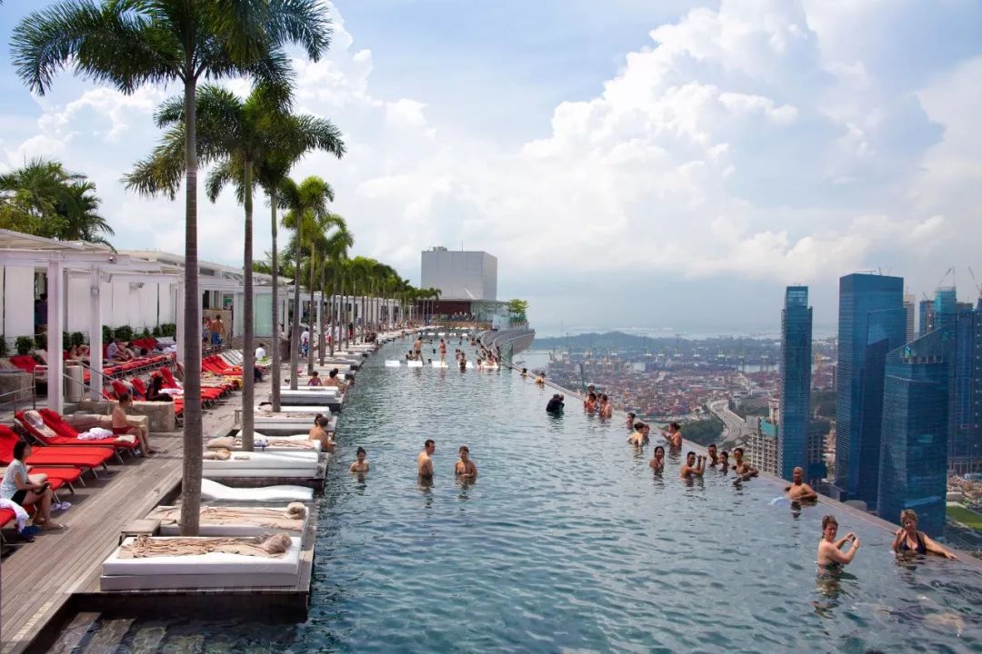 从无边泳池一览滨海湾的景致