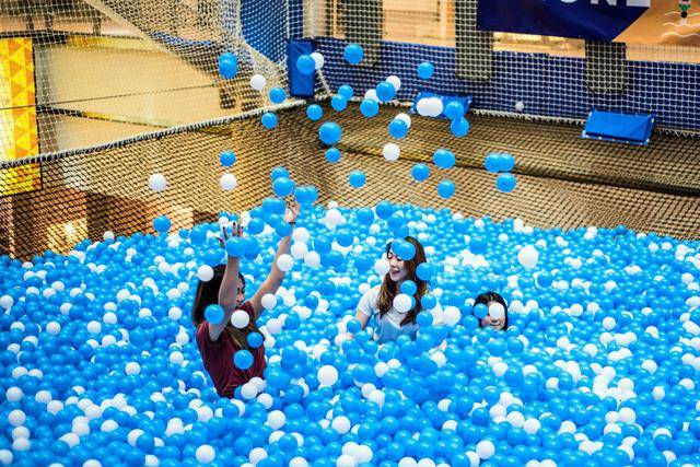 游乐场共有六层,每一层的游乐空间都设有不同主题。其中有一层楼是以网子搭建而成的立体迷宫,网状的路径需要大量的爬行才能通过,特别适合锻炼小朋友的腿部肌肉;还有一层楼是蓝白色的大球池,网状的池底充满塑料海洋球,特别考验小朋友的身手敏捷度。当孩子在爸爸妈妈的协助下,完成较高难度的挑战时,亲子之间的互动将更加紧密!