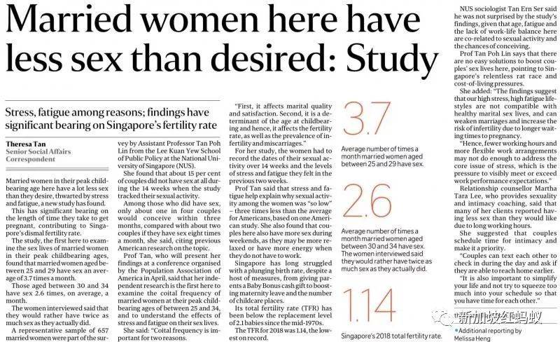 不过当然咯,读者看校花写稿那么久,自然知道校花不是青春玉女了,大家在校花最璀璨娇嫩的时候没有这个红蚂蚁园地听校花说大道理。现在总算有了,那是大家的福分,身边还有谁没享到福的,记得帮忙广为赐福啊~~ 说到最难将息,除了身子骨,前天看英文报,大咧咧头条新闻竟然是另一种“最难将息”的事情,真是差点让校花喝水呛死了! 新闻说的是,新加坡已婚的年轻女性竟然做爱不足,欲求不满,最难将息呀!哈哈哈哈哈~~