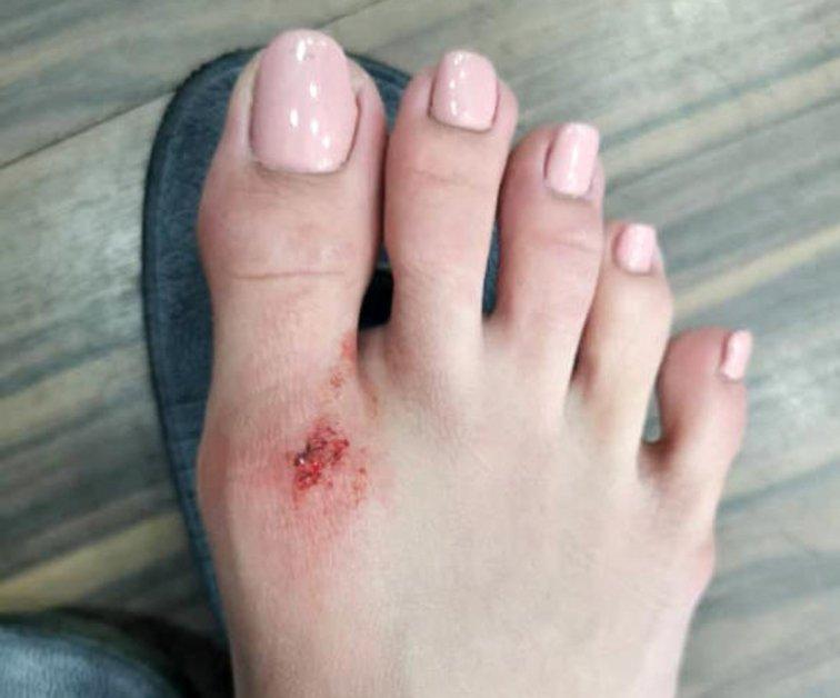 老板娘指对方向她乱扔物品,结果脚趾被打伤。(受访者提供)