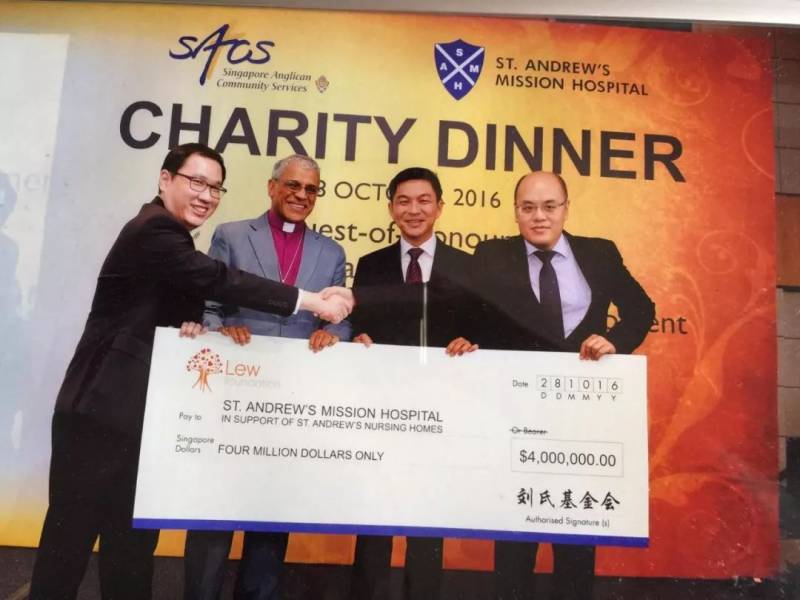 刘氏基金会捐款200万给MWS-油池(左为卫生部长颜金勇,中为刘智评,右为国家发展部长黄循财)