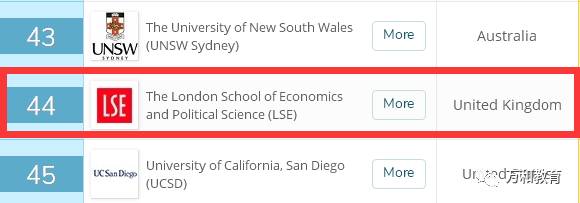 2019-2020 QS世界大学综合排名中,LES位列全球44,英国大学排名第8位。