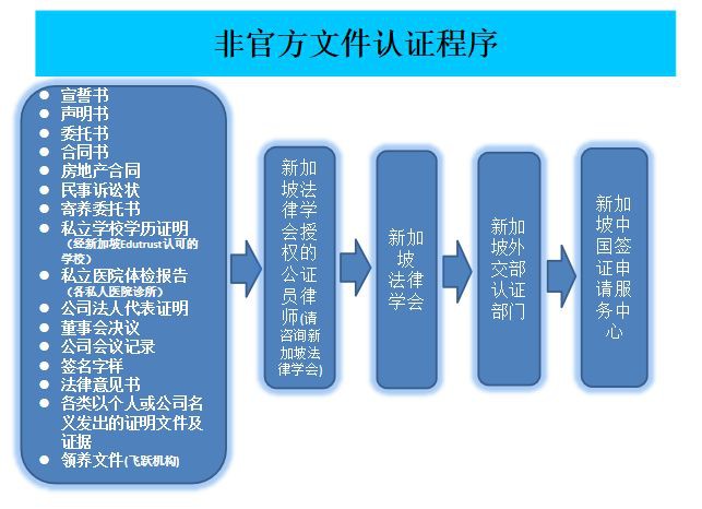 宣誓书、声明书、委托书、合同书、房地产合同、民事诉讼状、寄养委托书、私立学校学历证明(经新加坡Edutrust认可的学校)、私立医院体检报告、公司法人代表证明、董事会决议书、公司会议记录、签名字样、法律意见书、各类以个人或公司名义发出的证明文件及证据、领养文件(飞跃机构)