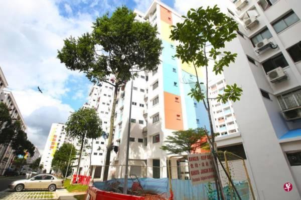 义顺71街的几座组屋每天傍晚就会出现大批爪哇八哥回巢,造成大量噪音,但在替换树木后,情况已有所改善。(梁伟康摄)