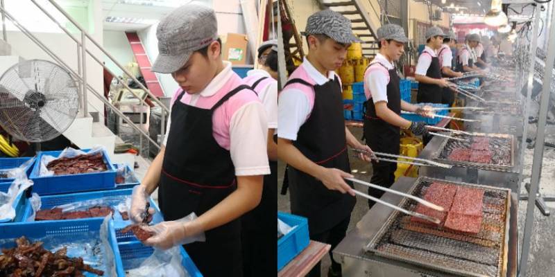 然而问题是层出不穷的,批量生产果然影响了肉干的风味。在众人集思广益的努力之下,大家找到了解决方案:铺肉、炭烤,与去除烧焦等无法被机械取代的工作,就都由人力进行;肉干在工厂只做成七分熟的半成品,送到店面后再进行最后烘烤的动作。