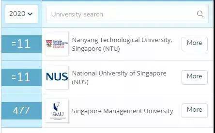 2020QS世界大学排名,新加坡共有3所大学上榜。