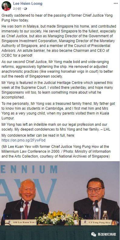 “新加坡最优秀的儿子”与世长辞 李显龙揭秘这位前大法官与父亲李光耀的温馨互动