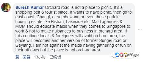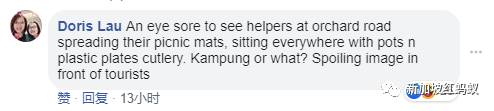 “看到帮佣在乌节路摊开野餐垫真辣眼睛,到处随意坐,满地都是锅、塑料盘子和餐具。这难道是甘榜?在游客面前破坏新加坡的形象。”