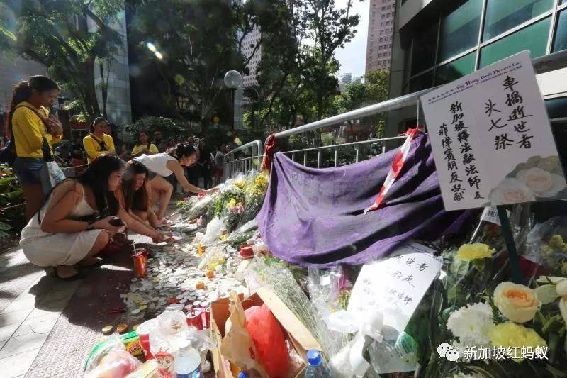 距离乌节路幸运商业中心女佣路边聚餐被撞飞事件已经过了一周,上周日(1月5日)是两名女佣的头七,事发地点近十米长的人行道事发后都被围了起来,不少人在那里摆上鲜花、蜡烛、快餐和饮料等祭品来悼念亡者。