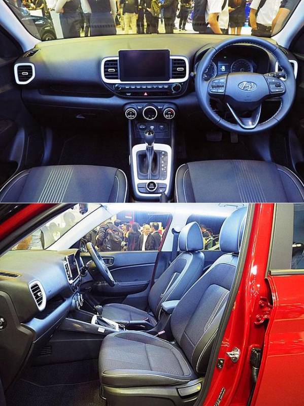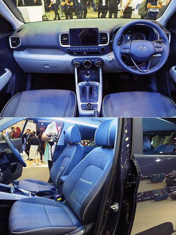 现场展出的高阶 Venue S 在内饰采用黑灰双色铺陈,并有 Denim 牛仔布色调的座椅带来时尚氛围;现场的入门款车型虽为黑色座椅设计,但透过白色出风口等配置带来活泼氛围。